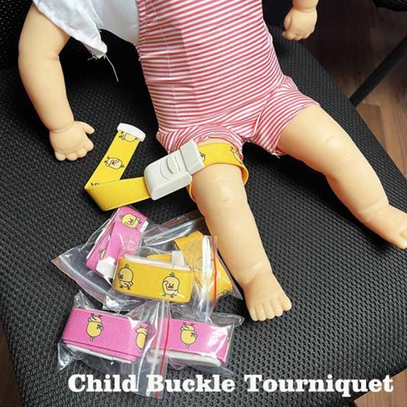 Schnallen-Tourniquet für Kinder, hergestellt aus weichem und elastischem Material. Im Vergleich zu Tourniquets für Erwachsene sind die Schnallen-Tourniquets für Kinder so dimensioniert, dass sie an die Arme oder Beine von Kindern passen. Sie ermöglichen eine präzise Blutungskontrolle, ohne übermäßigen Druck auf die Blutgefäße und die Haut von Kindern auszuüben.